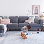 For us, it is alllllll about the rug! I really felt we needed a bigger and prettier rug to redefine our couch space. We had originally used a rug from our tiny apartment (note: me thinking this would be the “chill out space” for snuggling and reading, versus reality that my kids mostly like to play on the carpet! So this is where they would drag all their toys to! (and with our smaller rug, it quickly became a very cluttered, crowded area!)